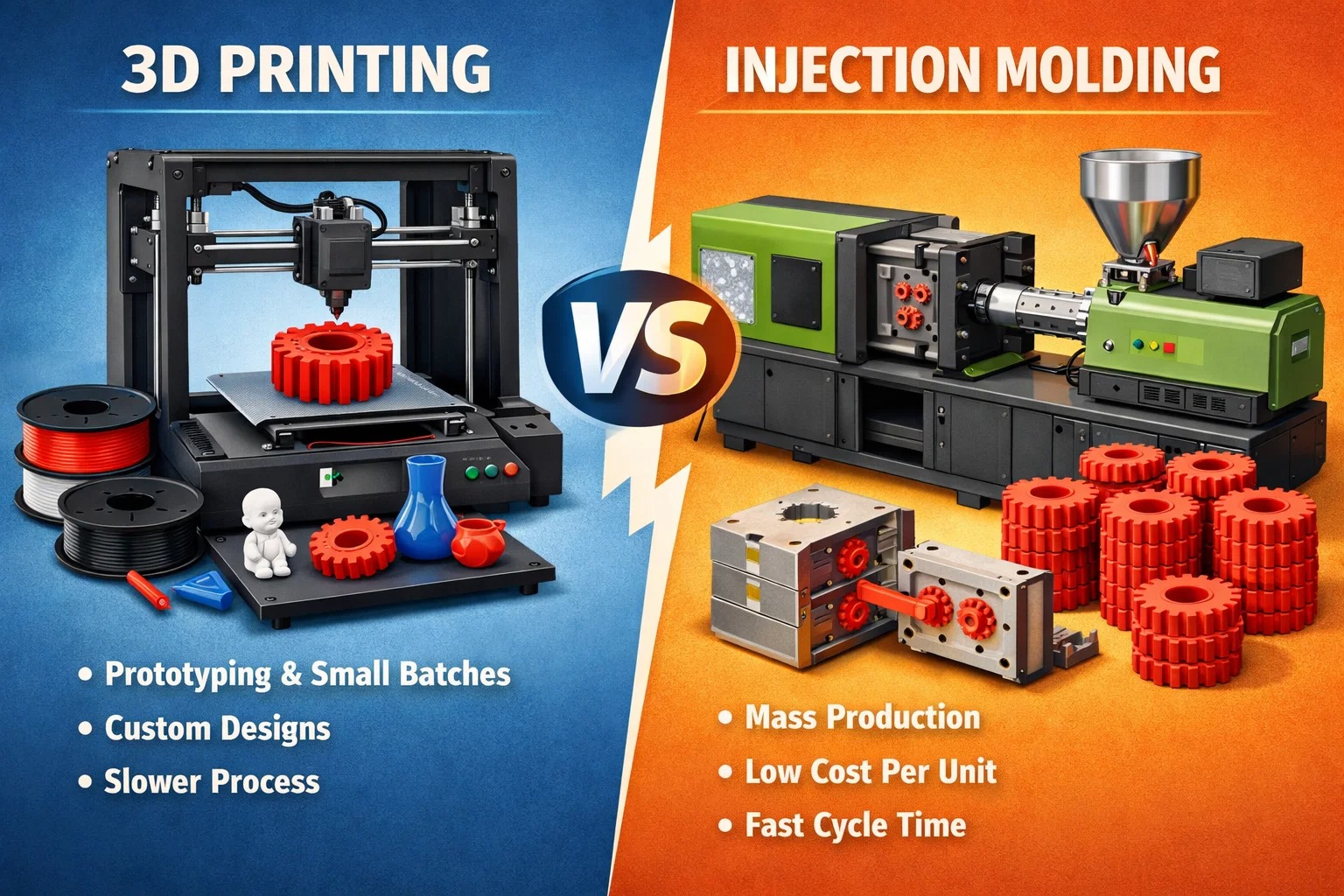 Чесно кажучи, найрозумніші команди насправді не обирають жодного — вони використовують 3D-друк, щоб швидко й дешево зазнати невдачі, а потім переходять на формування, щоб виграти в роздріб. У цьому посібнику детально пояснюється, де знаходиться точка «беззбитковості» та як уникнути дорогих помилок, які зазвичай вбивають проект ще до його запуску.
