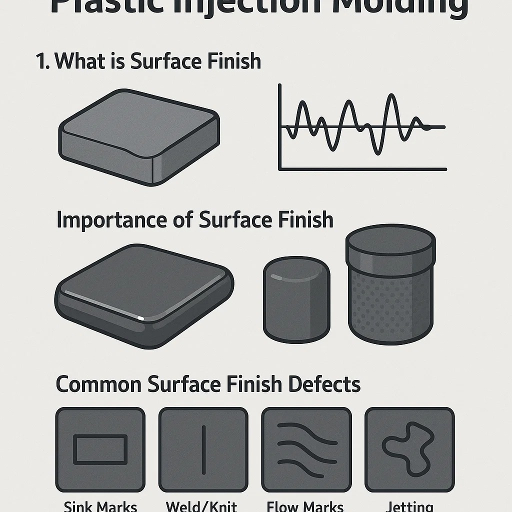 У цьому вичерпному посібнику детально описано, як досягти оптимальної обробки поверхні під час лиття пластику шляхом збалансування вибору матеріалу, конструкції форми та параметрів обробки. Він визначає такі ключові показники, як R a значення та шкалу обробки SPI, а потім досліджує такі методи, як полірування форми, лазерне текстурування та розширений контроль температури форми. Нарешті, стаття пропонує систематичні рішення для поширених дефектів, таких як сліди від раковини та лінії зварювання, а також розглядає майбутні тенденції, зокрема нанотекстурування та полімери, що самовідновлюються.