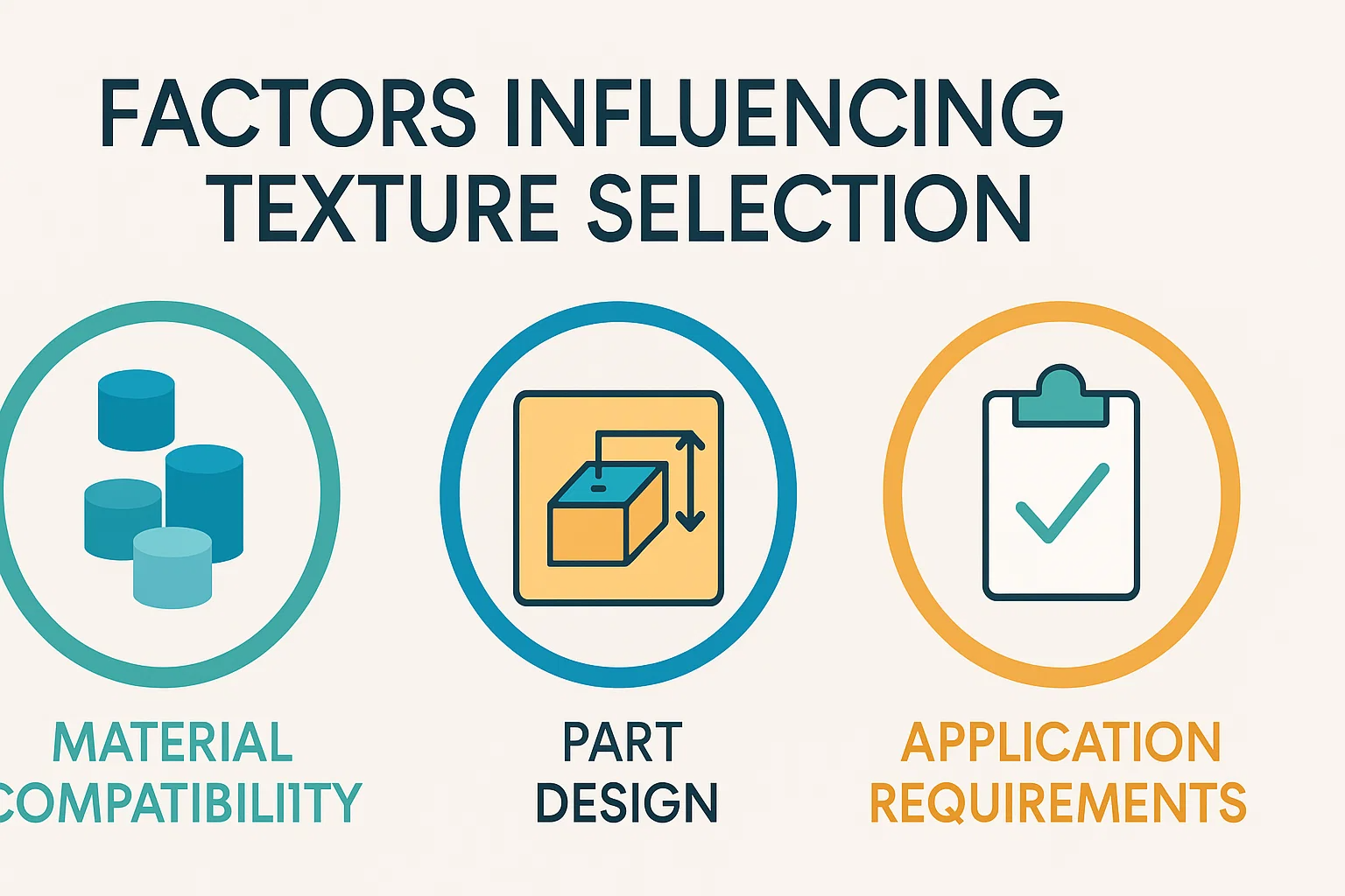 Вибір правильної текстури цвілі для частини є критичним рішенням, яке врівноважує естетику, функціональність та виробничі обмеження. Процес відбору рідко є підходом для одного розміру і в значній мірі залежить від трьох ключових факторів: матеріалу частини, його дизайну та остаточних вимог до застосування.