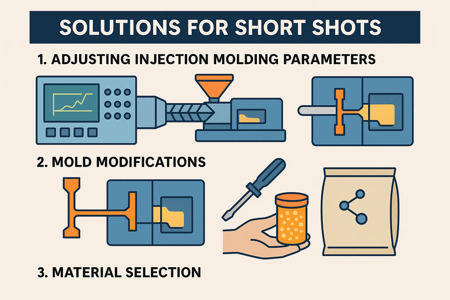 Розв’язання короткого пострілу вимагає стратегічного підходу. Часто найкраще почати з найпростіших і найвигідніших рішень, перш ніж переходити до більш складних і дорогих. Почніть з налаштувань машини, а потім розглянемо матеріал і, нарешті, подивіться на саму форму.