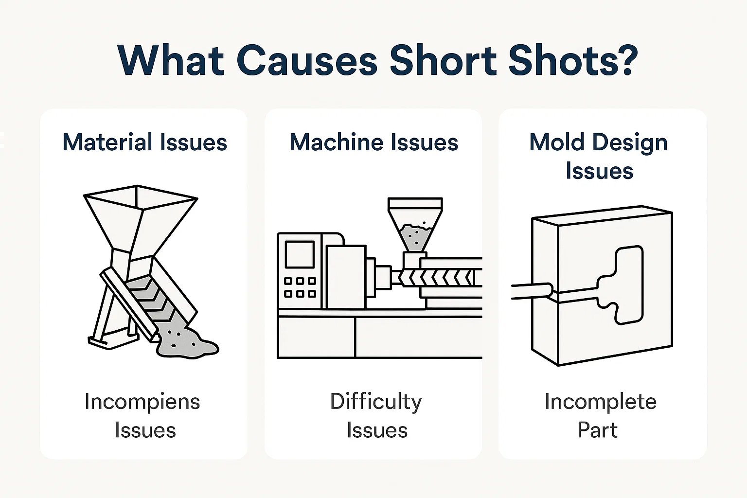 Діагностування короткого пострілу вимагає систематичного підходу, оскільки причина може випливати з декількох різних областей процесу лиття під тиском. Найпоширеніші проблеми можна простежити до матеріалу, налаштувань машини або самої конструкції форми.